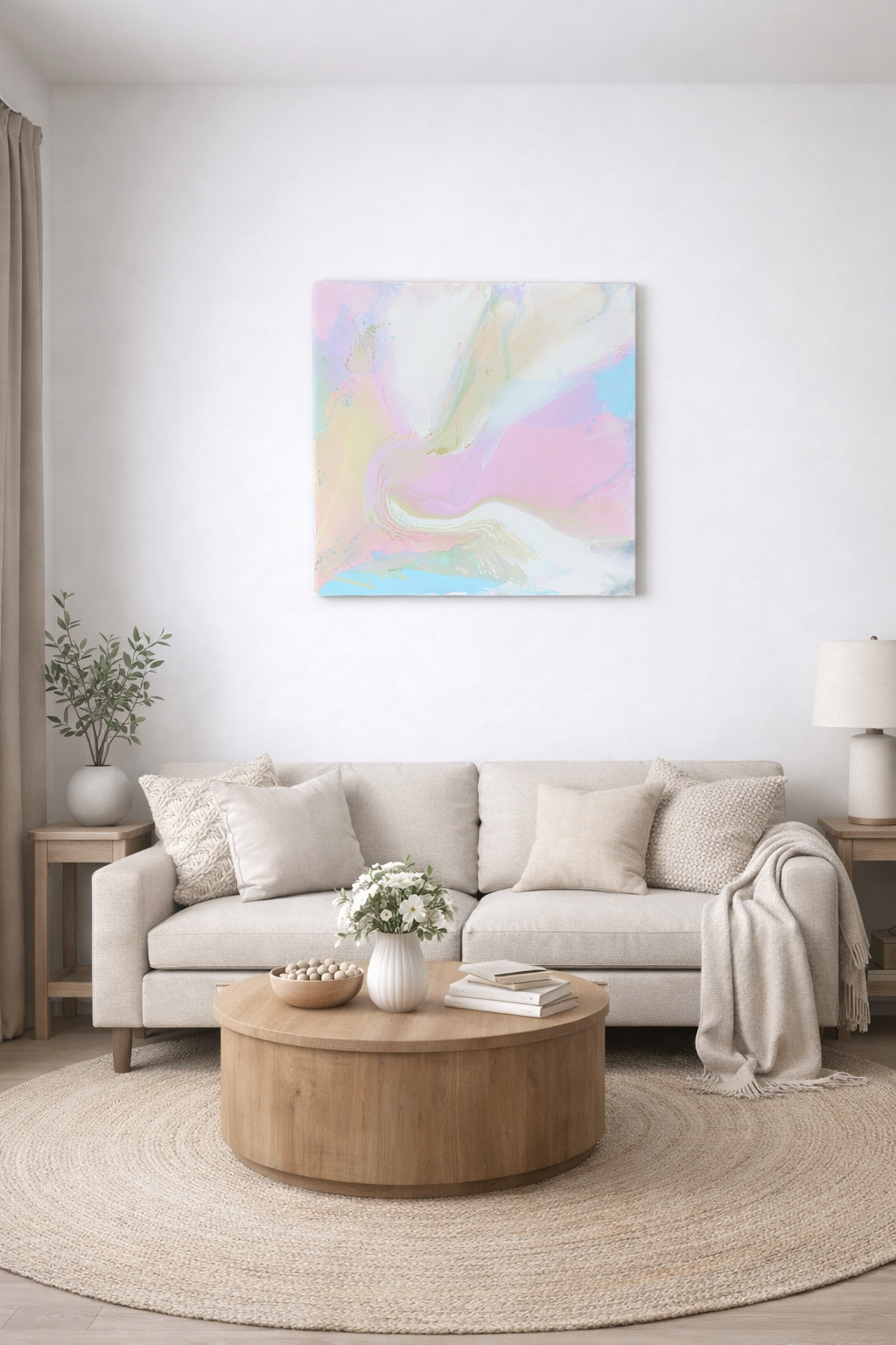 An abstract acrylic on canvas, featuring layered blue tones and fluid lines that evoke water and light. Calm, contemporary, and atmospheric, the piece brings a sense of depth and quiet movement to any space.